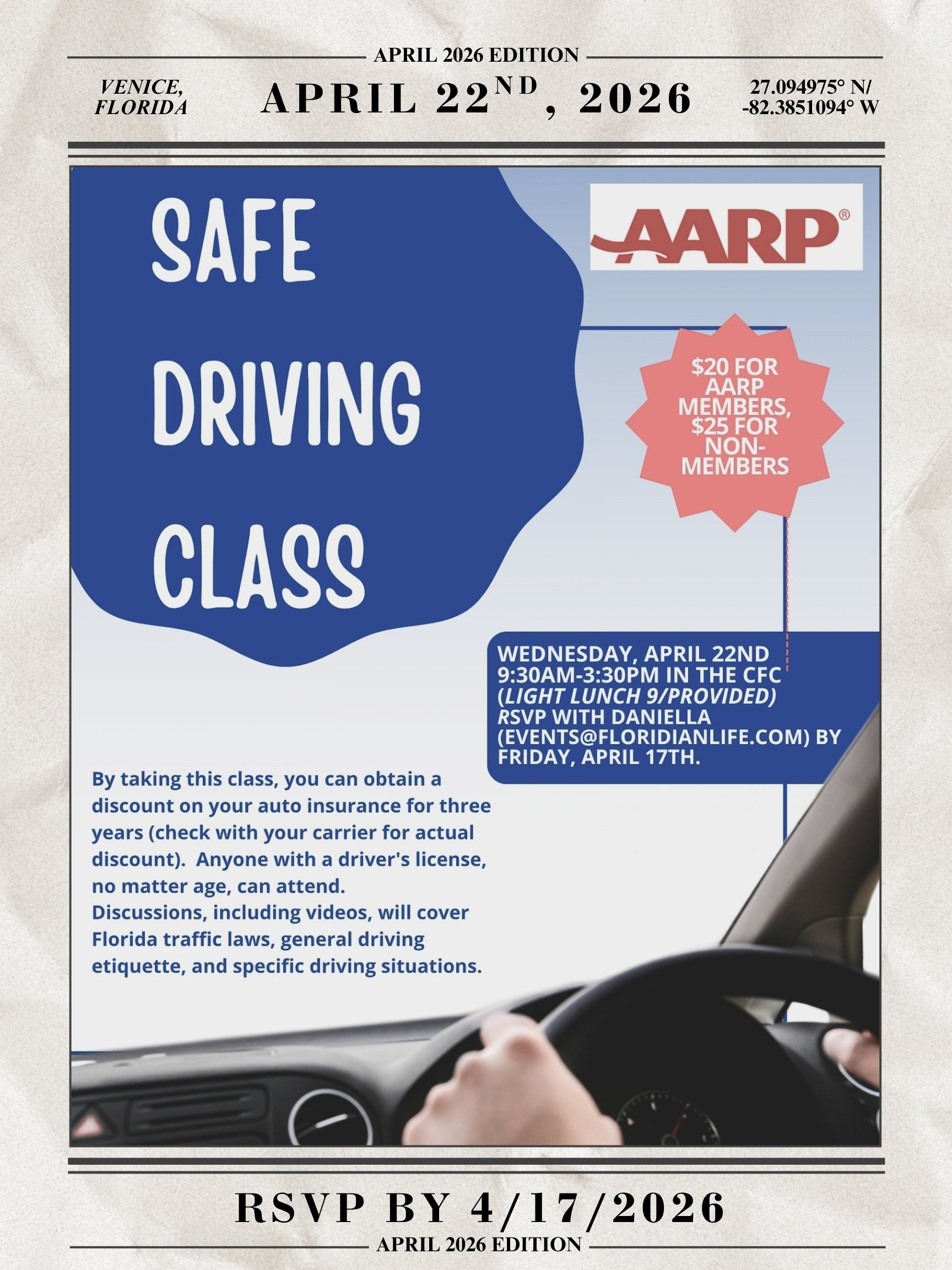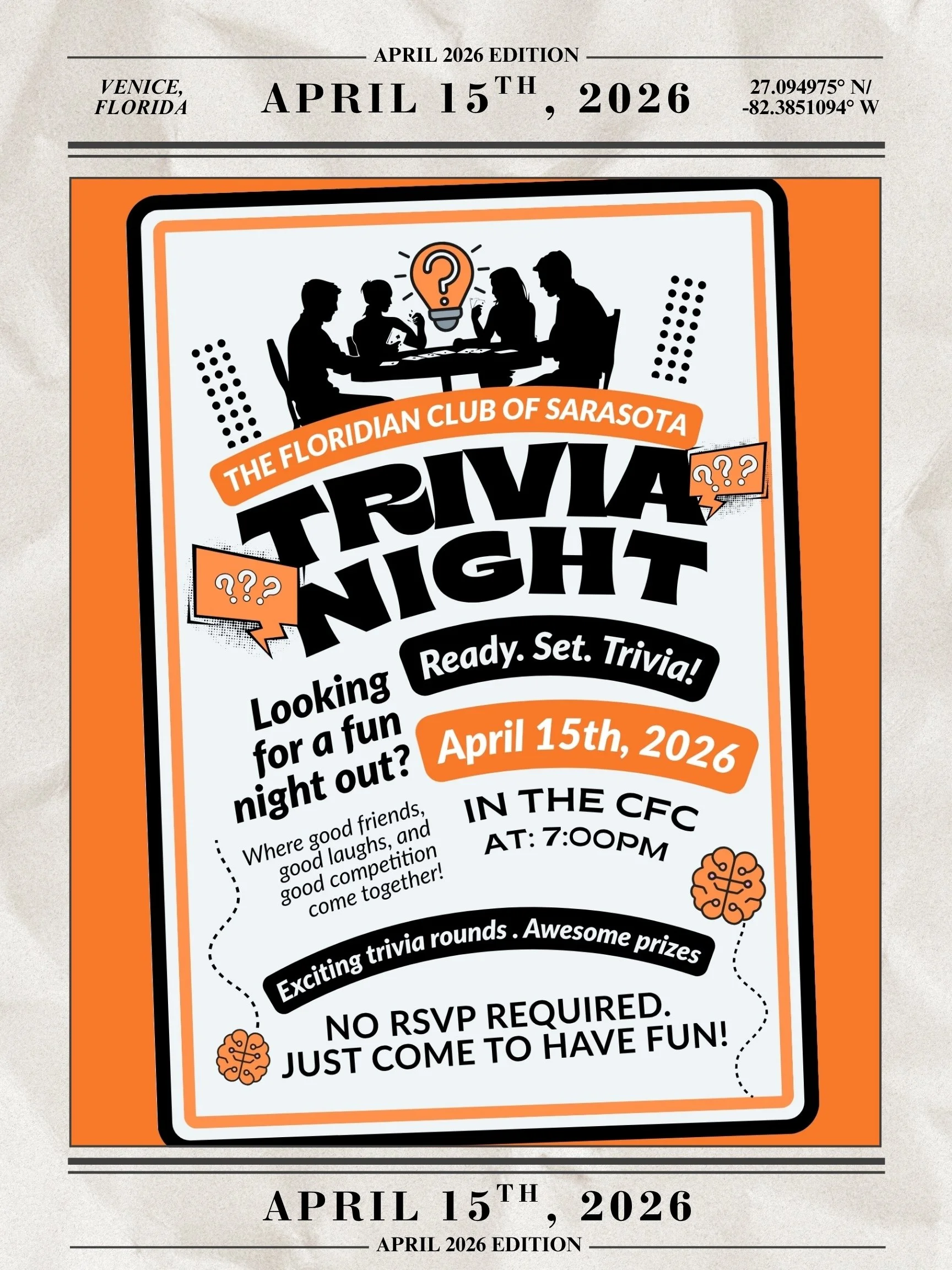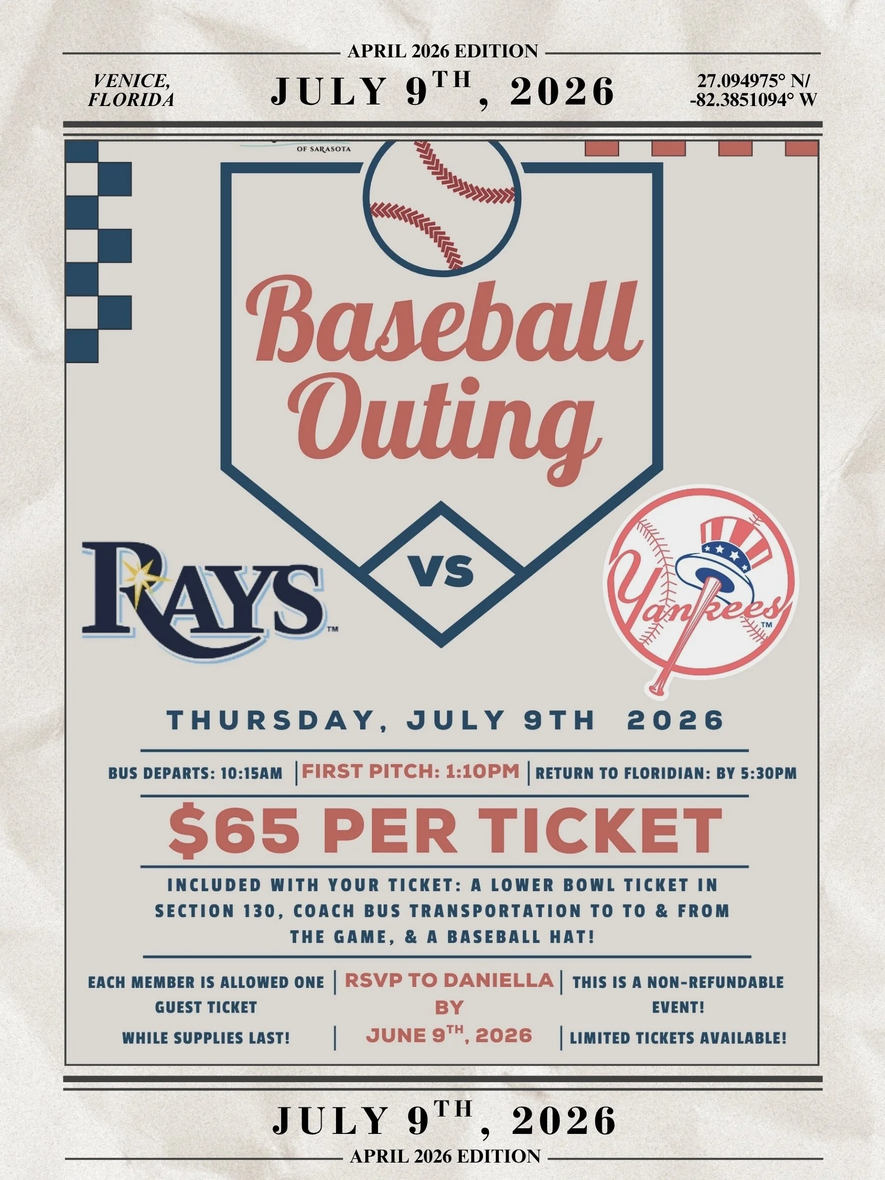 Sarasota County’s Best Active Adult 55+ Community For Lease! From live music, to sunset cruises, group excursions to local events and restaurants and so much more, there is always something to pique everyone’s interest at The Floridian Club!